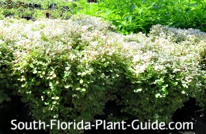 Though the dwarf doesn't have the pink coloration of the regular Snowbush, it stays smaller and more compact - easily kept about 2 feet.