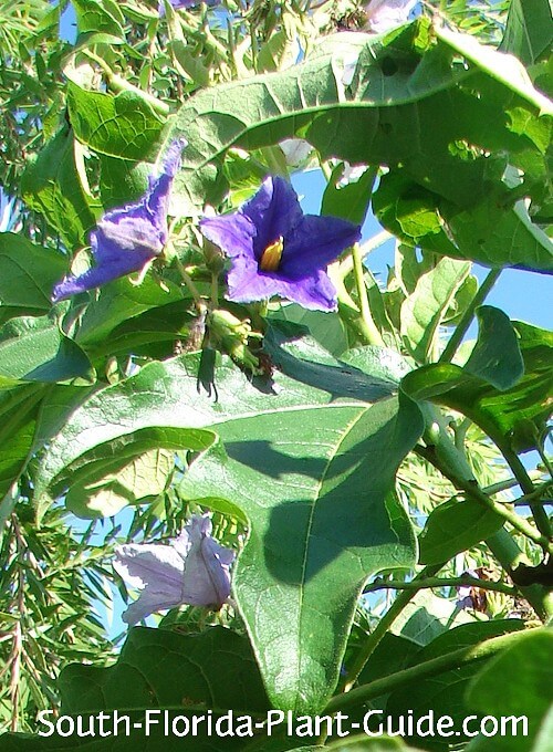 But it's a beauty of a plant, a big fast grower with flowers that emerge purple, fade to lavender and then white, much like Yesterday Today and Tomorrow. No potatoes, though. (It's a relative.)