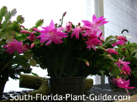 Christmas cactus (Schlumbergera) is an epiphyte that comes from a high elevation jungle atmosphere. It needs bright indirect light and shelter from too much heat and too much cold.