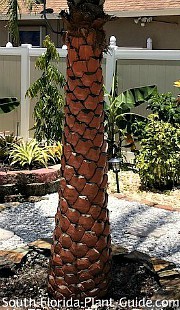 In last month's Grow-zine I spotlighted a web visitor's Sylvester Palm, to which she had applied a stain on the trunk. A landscaper contacted me, saying his company does this - and applies Thompson's Water Seal after the stain dries to keep the finish lasting longer.